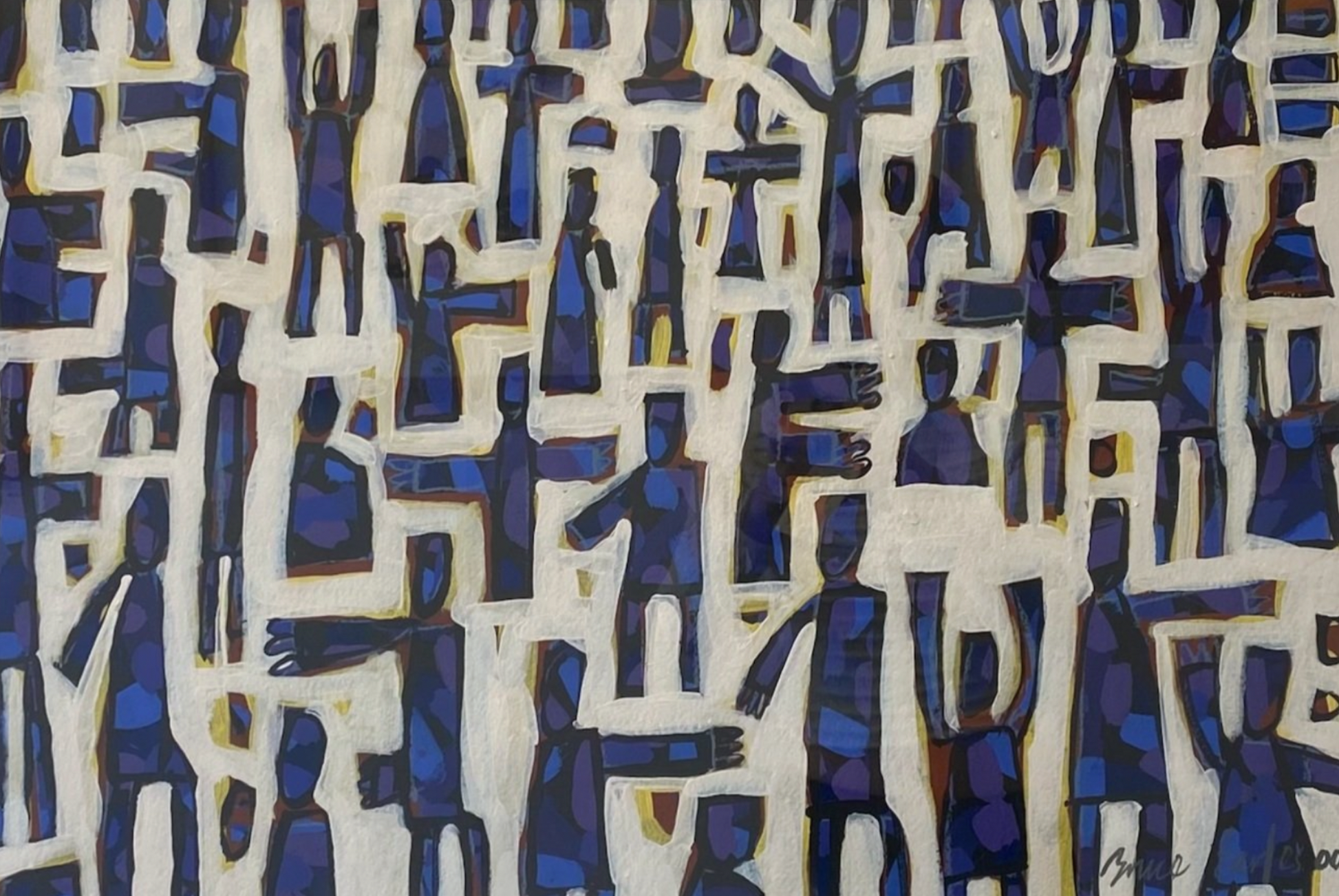 Bruce Earles (1953–2023) exhibited widely across Australia and internationally from the 1970s. He earned a Pollock-Krasner Award in 2000 and a Doctor of Creative Art from the University of Western Sydney in 2001. His work explores themes of humanity’s relationship with the environment, urban life, and the balance between industry and leisure. Earles' vibrant landscapes feature powerful city structures and the ocean, with humans, animals, and nature interwoven. His use of color and texture creates dynamic, expressive images that extend beyond the canvas, focusing on interpretation rather than analytical representation.